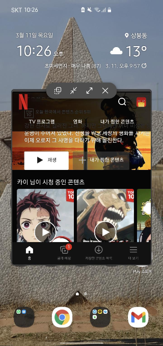 그동안 다른 앱들을 창모드로 해서 사용했는데 이제 화면 분할로 사용할 수 있게 되었습니다.
